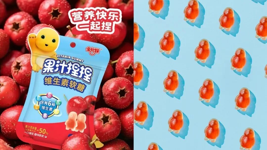 从国外杀回国内的金多多食品是另一代表性企业,旗下拥有“贝欧宝”和“阿麦斯”两大品牌。聚焦功能性、趣味性,打造出贝欧宝活性益生菌软糖、阿麦斯4D积木软糖、阿麦斯4D爆汁软糖···多款爆品,成功俘获了不同年龄段消费者的胃和心。 新品盘点:持续创新构筑护城河 市场的繁荣并未让品牌固步自封,反而激发了更激烈的创新竞赛。如今,大家依旧在软糖这一赛道不断深耕、研发、创新,寻找更多的可能性。 老牌糖果企业金丝猴对其明星产品“果汁捏捏系列”进行重磅升级,于2025年4月底推出“多维山楂软糖”。 ![]() 新品以“6种维生素科学配比,山楂开胃助成长”为核心卖点,在保留趣味捏捏包装的同时,通过“维生素+山楂”的创新组合,切入儿童健康成长场景,为功能性软糖市场注入了传统食养智慧的新活力。 而作为创新先锋的新期天,在巩固剥皮软糖基本盘的同时,积极拓展边界。 品牌敏锐地押宝热门IP与《疯狂动物城2》联名推出推出100%果汁软糖、软棒糖以及酸了吧软糖。