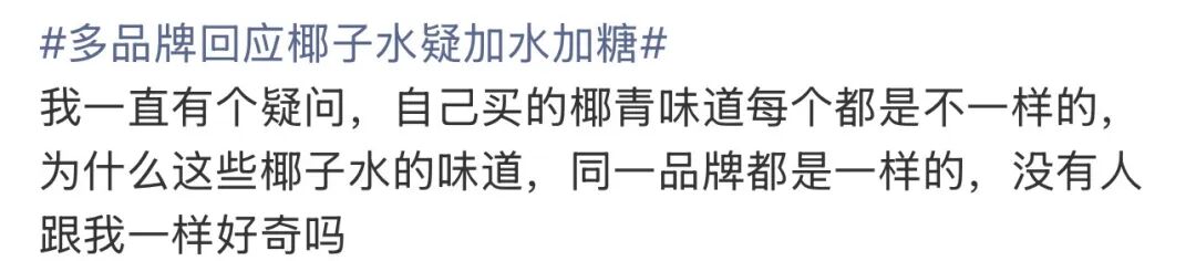 熬出头的椰子水,要被“勾兑、掺水”打回原型了?发表时间:2026-03-03 10:29 ![]() 椰子水的普及,本是消费升级的典型样本。2020年之前,300ml瓶装椰子水单价普遍超10元,因原料稀缺、进口成本高,始终属于小众品类。随着健康化、功能性饮料风潮兴起,椰子水凭借天然电解质、0脂低糖、清爽解腻的标签,被资本与品牌集体盯上,迅速进入商超、便利店与电商渠道,完成大众化渗透。 2022年后,品牌扎堆入场,价格一路下探。消费者以为是供给增加带来的普惠,却没看清:售价与成本严重倒挂,早已埋下系统性造假的伏笔。 一颗新鲜椰青市价约10元,仅能出汁约300ml,1升纯椰子水仅原料成本就超30元。但电商平台9.9元1升的“100%椰子水”随处可见,违背基本商业逻辑。媒体送检结果显示,多款产品配料表只写“椰子水”,却被稳定同位素技术检出外源水、果葡糖浆、淀粉糖浆,本质是“糖水+香精+少量椰水”的勾兑货。 ![]() 图源:微博@赵璞 甚至有的网友表示自己在海南现买的椰子打开后,里面的椰子水喝起来平淡无奇,并不如市场上卖的瓶装椰子水甜。 其实稍微动点脑子就会明白,9.9元买到1L装“100%椰子水”,这种明显违背成本逻辑的现象背后,其实是行业系统性的掺假行为。 也是扰乱椰子水市场的罪魁祸首。 事实上低价椰子水会通过加水稀释、加糖调味、添加香精仿风味这三种工艺方式来降低成本。 比如通过添加纯净水来稀释纯椰子水,通过用玉米糖浆、果葡萄糖浆来提升甜度,以此来掩盖掺水后的寡淡感。 甚至有的还会用人工香精模拟椰香,来掩盖劣质原料的异味。 除此之外还有的品牌会使用印尼、越南的老椰子水来冒充泰国的香水椰,甚至标注“泰国风味”混淆产地。 ![]() 那么为啥会有品牌要这样做呢? 首先是利益驱动,当市场蛋糕足够大的时候,自然会有大量入局者涌入,近年来消费者对椰子水的需求逐年增加,但进口椰子需要一定的成本,而一些不知名的品牌无法通过常规价格与知名品牌对抗,因此只能以次充好来降低成本,从而吸引消费者。 其次是监管困境,虽然2025年《椰子水团体标准》引入稳定同位素检测,但并非强制标准,并且国内数据尚未完善,同时椰子水缺乏专项国标导致执法证据不足,一些代工厂完全停购纯椰子水原料,转向勾兑生产。 最后是消费者信息不对称,让“干净”的配料表成为遮羞布,其实消费者对椰子水口感和口味的认知大多数来自于瓶装椰子水上的配料表,但我们发现,大多数椰子水包装配料表非常干净,仅标注椰子水,但一些经过检测的椰子水产品里都检测出外源水和糖,导致消费者无法分辨。
